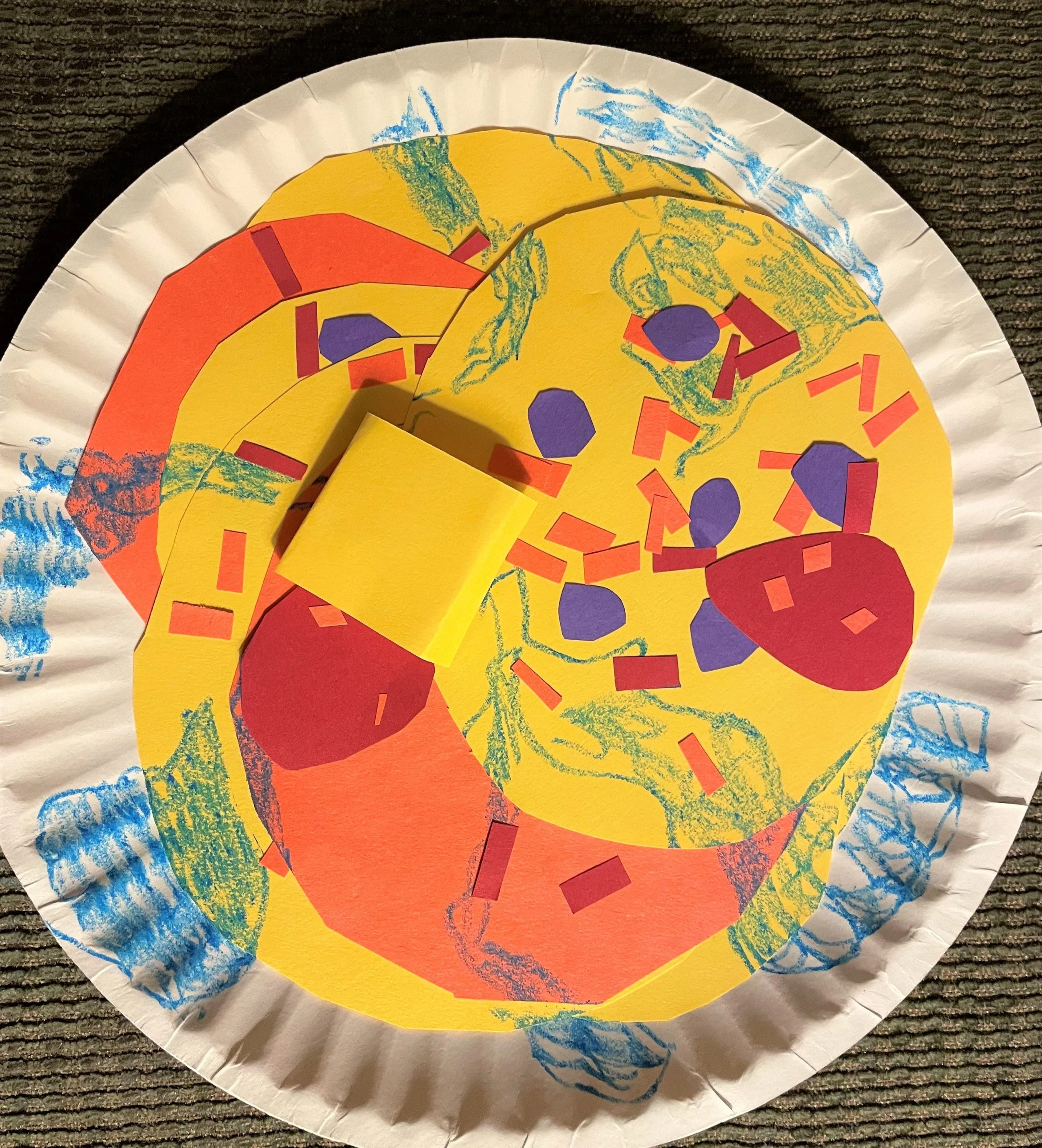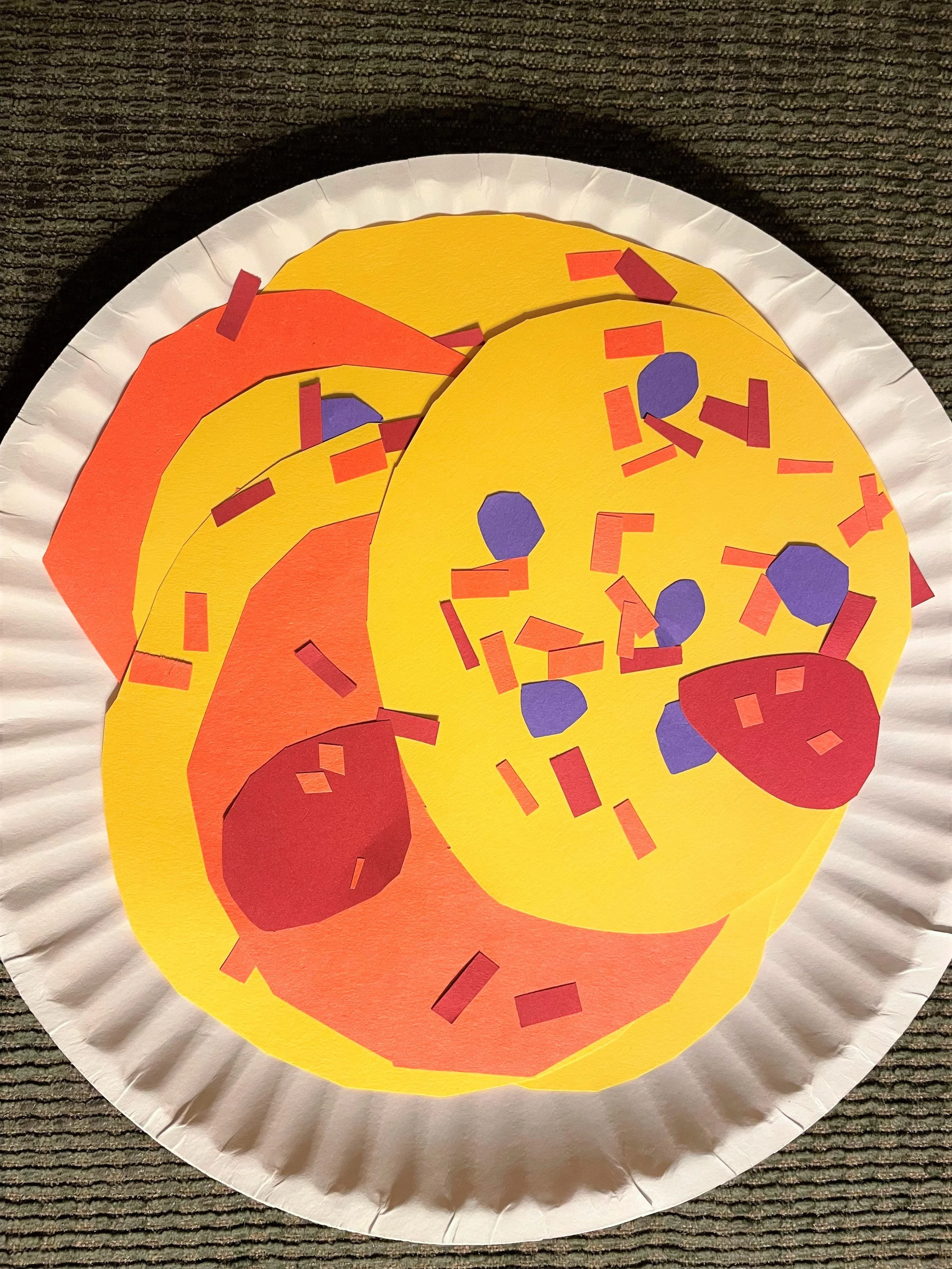 GLUE your pancakes to your paper plate to make a BIG stack. GLUE your toppings just the way you like them!