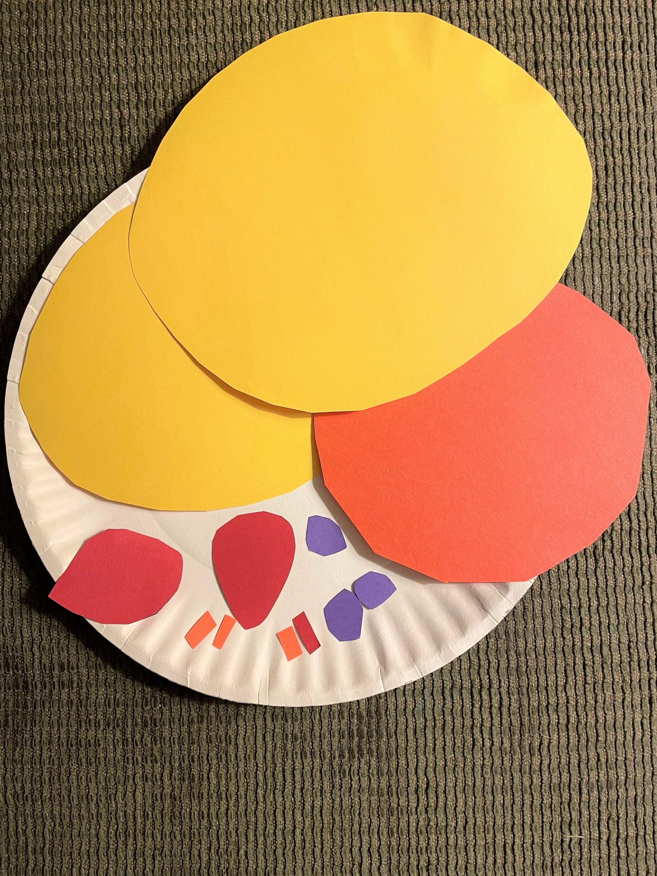 CUT several big, circular shapes from the yellow paper.